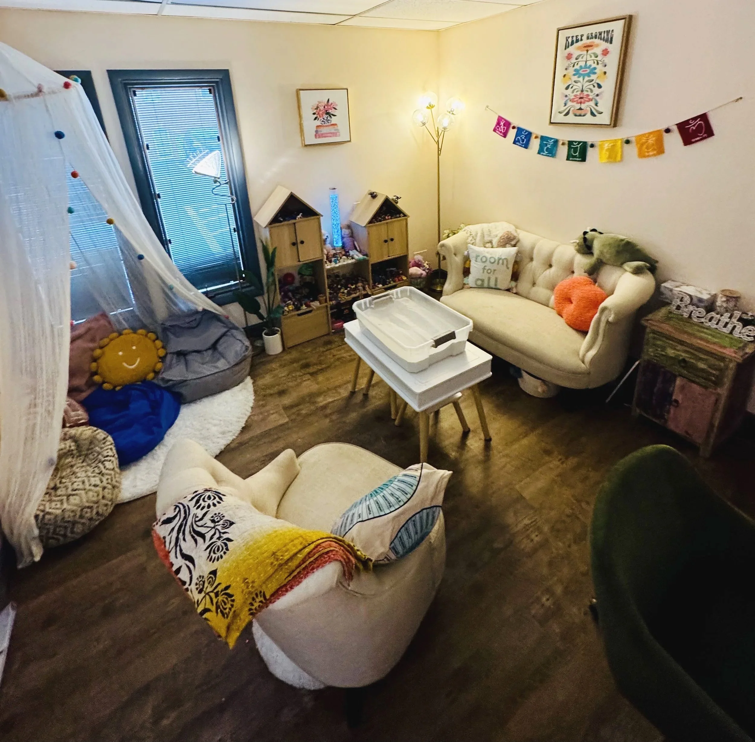 Join us in-office to experience our integrated, multi-sensory environment and added resources provided in the office setting. Although, both forms of coaching are beneficial, our office provides access to the sand box, creative and expressive arts and crafts, as well as imaginative and outdoor play. It integrates lighting, tools, and comforts and a human connection that helps clients to naturally feel more relaxed and safer to explore their inner experiences. Easily accessed and locatede in a convenient area of Knoxville, TN.